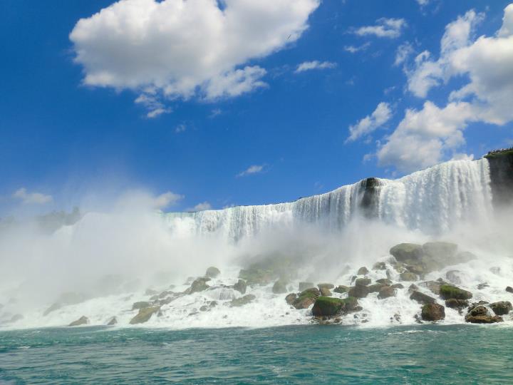 Acque Tuonanti, come veniva chiamata questa località nella lingua dei nativi iroquesi, sarebbe un posto spettacolare immerso nella natura, che dà tutta l’idea della potenza della terra, dell’acqua, uno scenario spettacolare …se non fosse per le tonnellate di cemento arrampicate sulla riva. 52 metri di salto, la più grande cascata del Nord America. Bellissima. Una grande emozione passarci vicino con il mitico battello “Maid of mist”. Dopo due ore di coda ti consegnano un bellissimo poncho impermeabile e poi via con questo battello che man mano che ti avvicini sembra sempre più piccolo rispetto all’imponenza della cascata. E poi a un certo punto un tuffo in una nuvola di pioggia fina che ti fa mancare il respiro.