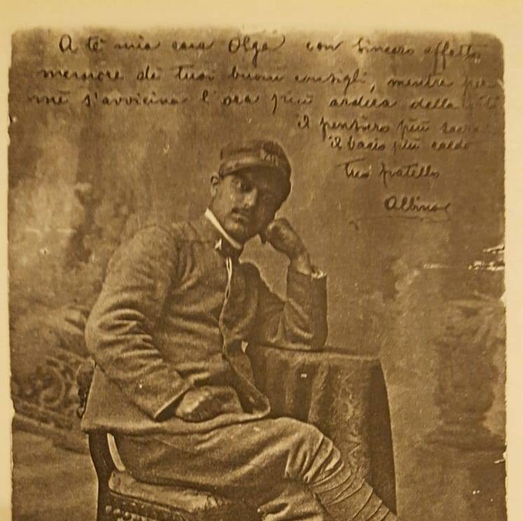 Tra delle vecchie carte abbandonate nel garage del nonno mio padre ha trovato alcune vecchie lettere. Una di queste apparteneva al mio bisnonno Albino Bellemo Brà. Una lettera di inizio ‘900, scritta in una grafia elegante. Qualche scarabocchio. I segni del tempo. Un italiano colto, che ci ha stupito e che ci ha portato a interrogarci su chi fosse veramente Albino, che studi avesse fatto per poter scrivere in modo così raffinato. Forse la sua lettera dal fronte venne scritta da qualche altro soldato. Chissà. Ma quello che stupisce ancor più della grafia e dell’uso della lingua è il contenuto della lettera, i valori che esprime, e quella frase finale in cui, in modo così lucido e del tutto antesignano per l’epoca, Albino esprime alla sorella Olga il suo innato pacifismo, la sua profonda avversione “per la guerra, per tutte le guerre”.