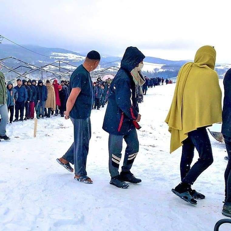 Foto IPSIA BIH (giovani migranti nel campo di Lipa, Bosnia, gennaio 2021)